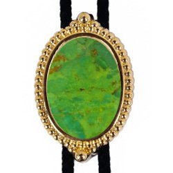 The Mojave Green Turquoise Premium Beaded Edge Bolo Tie features a large Mojave Green Turquoise stone measuring 40x30mm (or 1 5/8″ by 1 1/4″). The slide features an.