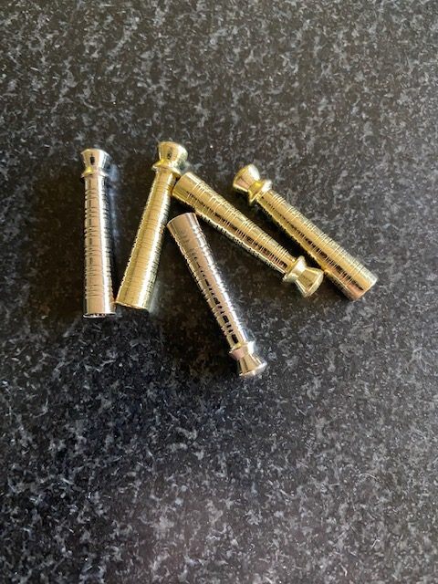Blunt tips. Gold or silver finish. One and 1/4" long. Accomodates our 3.5.mm cord.