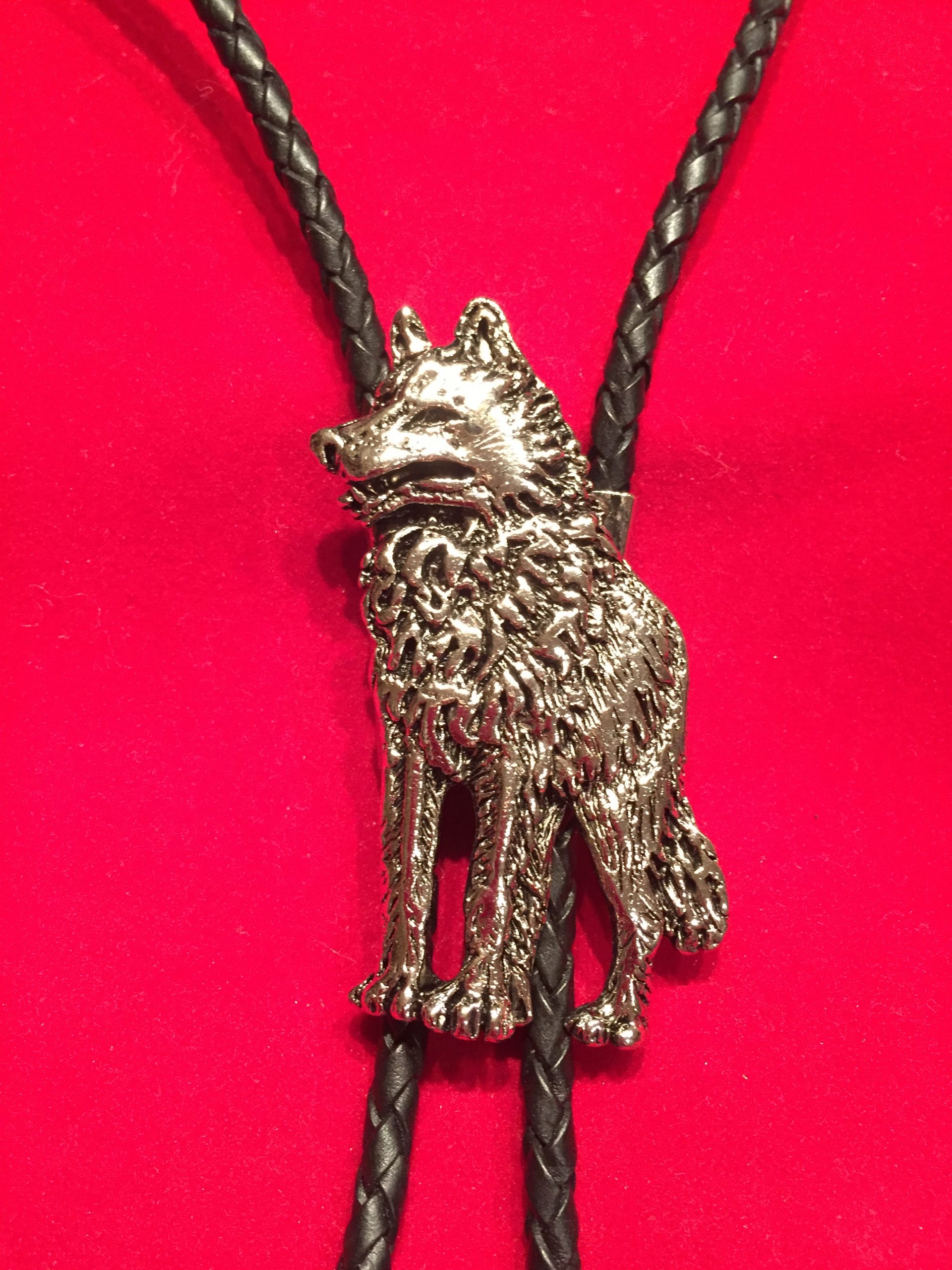 The gray wolf or timber wolf is a canine native to wilderness and remote areas of North America. The gray wolf is generally monogamous, with mated pairs usually remaining together for life. Our wolf bolo is 2 1/4 inches tall and 1 â…œ inches wide. Each wolf is cast in the USA and plated with …